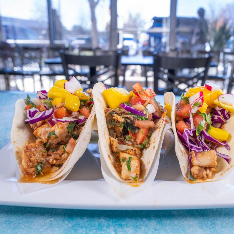 Grilled tilapia tacos with diced mango, cabbage, onions and cilantro. 3 tacos made with either 6" flour tortillas, corn tortillas or Bibb lettuce.